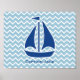 Nautical Blue Sail Boat and Chevron Personalized Poster