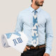 Blue Starfish on white sand are featured on this nautical themed tie with customizable Initials.