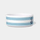 Design features a rope and anchor illustration in classic navy blue on a light blue and white stripe background. Personalize with a name or text of your choice. Anchors can be moved around depending on the length of your dog's name -- just use the "Customize It" button. Coordinating items, including pet tags and beds, available in our shop!