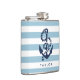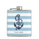 Nautical Blue Stripe & Navy Anchor Personalized Flask
