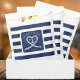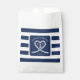 Nautical blue and white striped wedding favor bag. Great for a Navy (military) or lake house wedding. Design features a heart shaped rope with anchor and couple initials in the middle. Personalize it with your wedding details.