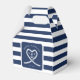 Nautical blue and white striped wedding favor box. Great for a Navy (military) or lake house wedding. Design features a heart shaped rope with anchor and couple initials in the middle. Personalize it with your wedding details.