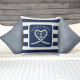 Nautical blue and white striped wedding pillow for a newlywed couple. Great for a Navy (military) or lake house wedding. Design features a heart shaped rope with anchor and couple initials in the middle. Personalize it with your wedding details.