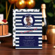 Make a splash with this personalized birthday invitation! It boasts a sophisticated navy blue and white horizontal striped pattern, providing a clean and elegant backdrop for your special event. The design includes a circular space for a cherished photo, making it a truly unique and personal keepsake. The color scheme is classic and timeless, perfectly suited for a birthday celebration of any age. Include all your party details, ensuring all your guests have all the information they need. Order today and make your party unforgettable! This design is perfect for a nautical themed party or any sophisticated birthday gathering.