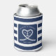 Nautical blue and white striped wedding can cooler. Great for a Navy (military) or lake house wedding. Design features a heart shaped rope with anchor and couple initials in the middle. Personalize it with your wedding details.