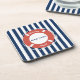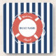 Nautical Blue Striped Welcome Aboard Boat Name Beverage Coaster