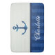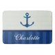 Nautical Blue Stripes Pattern Anchor Custom Name Bathroom Mat
