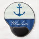 Nautical Blue Stripes Pattern Anchor Custom Name Gel Mouse Pad