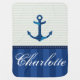 Nautical Blue Stripes Pattern Anchor Custom Name Receiving Blanket
