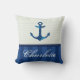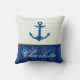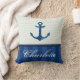 Nautical Blue Stripes Pattern Anchor Custom Name Throw Pillow