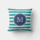 Nautical Blue Teal Stripe Monogram Throw Pillow