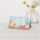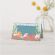 Make it easy for your guests to find their seats with this cute ocean inspired escort card with blue waves highlighting a beach covered with colorful seashells.