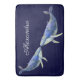 Nautical Blue Whale Watercolor White Wood Name Bath Mat