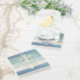 Coaster with a nautical blue, turquoise, and white striped distressed wood and white anchor design.