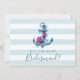 Nautical Will You Be My Bridesmaid Card design featuring anchor with flowers on a blue stripes background.