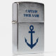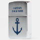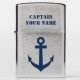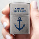 Nautical boat anchor custom captain name Zippo Lighter with personalized text. Navy blue ship anchor icon with name. Maritime gift idea for men. Cool Birthday or Father's Day gift idea for sailor dad, father, brother, grandpa, grandfather, uncle, friend, son, co worker, boss, captain, first mate, wedding groom etc.