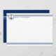 Handsome and smart nautical themed, personalized correspondence office note cards featuring your family name, company, event or other desired text. This 2 sided unique design features a boat anchor in a diamond circle emblem with stylish gradient lines, resembling the sea. The design is in classic navy blue and white.