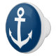 Nautical boat anchor door and drawer pull knobs or handles. Maritime / beach theme design with navy blue blue and white background color. Customizable background color. Ship anchors aweigh icon. Make your own sailing / ocean themed interior. Fun DIY accessories for home and office. Great for beautiful seaside / coastal kitchen, bathroom, bedroom cabinets, nursery, baby room, hotel room etc.