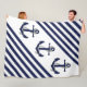 Nautical Boat Anchor/Navy blue/white stripes Fleece Blanket