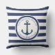 Nautical Boat Anchor Striped Custom Captain Name Throw Pillow