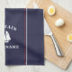 Nautical schooner sailboat captain with your name hand towels. White on a navy blue background with white and red striped border.