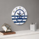 Nautical Boat Name,Anchor Navy Blue Striped Large Clock