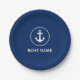 Nautical Boat Name Anchor Rope Navy Blue Paper Plates