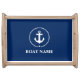 Nautical Boat Name Anchor Rope Navy Blue Serving Tray