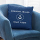 Nautical Boat Name Anchor Rope Welcome Aboard Throw Pillow Navy Blue
