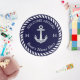 Nautical Boat Name Anchor Rope Navy Blue and White Welcome Aboard Outdoor round rug
