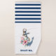 Nautical Boat Name,Floral Anchor Navy Blue Striped Bath Towel Set