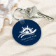 Nautical Boat Name Ship Wheel Navy Blue Keychain