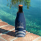 Nautical Boat Wheel, Navy Blue Stripes Bottle Cooler