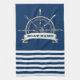 Nautical Boat Wheel, Navy Blue Stripes Kitchen Towel