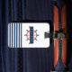 Nautical Boat Wheel, Navy Blue Stripes Luggage Tag