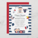 Plain white envelopes are included with paper invitations and will come to fit the invitation size you select. If you don’t need the envelopes, you may choose to not receive them by selecting the dropdown below "Envelopes" and choosing "None." If you’d like to have a design on your envelopes, you can browse all of these available envelopes to find the design that complements your Nautical Boy Virtual Baby Shower Invitation.