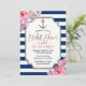 Nautical Bridal Shower Pink Floral Navy Stripes Invitation