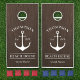 Nautical cornhole game set features a coastal style with an elegant white boat anchor and custom text that can be personalized with a last name + beach house (or other title) with the year established and location. A walnut brown faux wood grain background adds a rustic textured look to the design.