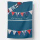 Nautical Bunting design with sailboats, anchors, diffuse lettering and stripes in the colors of red, white and blue, typical of nautical and coastal livin and maritime topics.