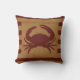 Nautical Burlap Red & Tan Stripes with a 🦀 Crab Throw Pillow