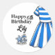 Celebrate in style with these custom Happy Birthday stickers, featuring a classic blue and white cabana striped design. These round labels add a sophisticated touch to party favors, gifts, and treats. Personalize them with the birthday girl's name for a memorable keepsake that's perfect for nautical summer celebrations. These high-quality, vibrant stickers elevate every detail, creating a polished and professional look your guests will adore.