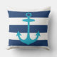 Nautical Caribbean Blue Anchor with Navy Stripes Outdoor Pillow