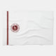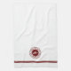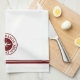 Nautical Chef personalized lobster logo kitchen towel with your name and boat name. Maroon emblem with classic block text on a white background. Double lined maroon border.