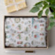 This nautical Christmas design is full of sailing ships, lighthouses, anchors, buoys, ship’s wheels, starfish and seashells, all decorated with holiday greenery, berries, poinsettia and holly.