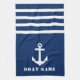 Nautical Classic Anchor Your Boat Name Navy Blue Kitchen Towel