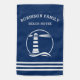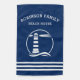 Nautical Classic Lighthouse With Your Personalized Family Name and Beach House Navy Blue Garden Flag.
