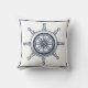 Nautical Coastal Blue Beach House Boat Ship Wheel Throw Pillow