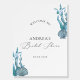 Welcome guests in style with this Nautical Coastal Blue Shell Bridal Shower Welcome Sign. Featuring a beautiful blue seashell design, this sign is perfect for a beach or coastal-themed bridal shower. The elegant typography and soft nautical blue palette set the tone for a relaxing and chic celebration by the sea, making it a standout piece of your event decor.
