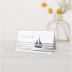 Elevate your wedding reception with these elegant place cards, featuring an anchor with a herald on one side and a sailboat with nautical stripes on the other. Crafted in muted bluish-grey tones, these cards add a touch of maritime charm to your table settings.