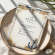 This elegant nautical wedding design features classic maritime elements including a compass rose, knotted rope, seashell details, and a timeless anchor accent. Set against a soft neutral background with navy and gold touches, the composition feels refined, coastal, and romantic without being overly themed. Perfect for seaside weddings or couples who love subtle nautical symbolism with a polished, timeless aesthetic.